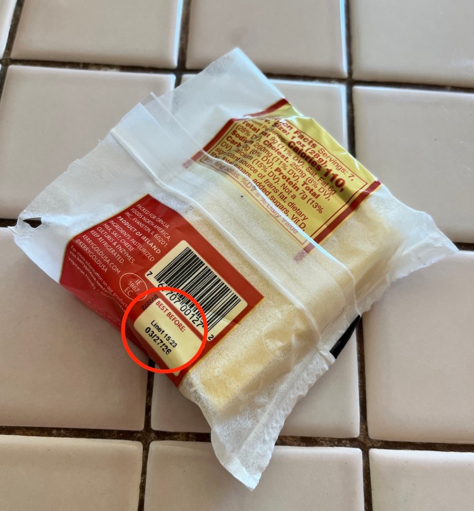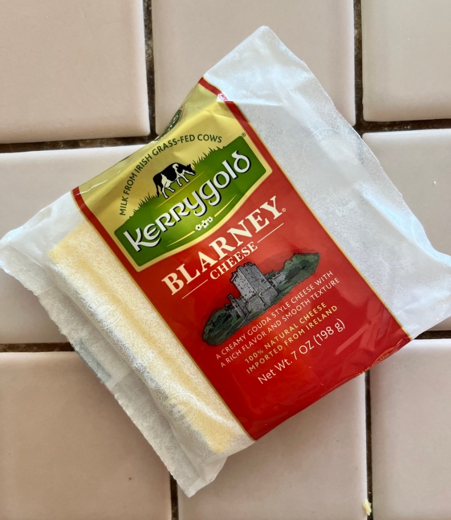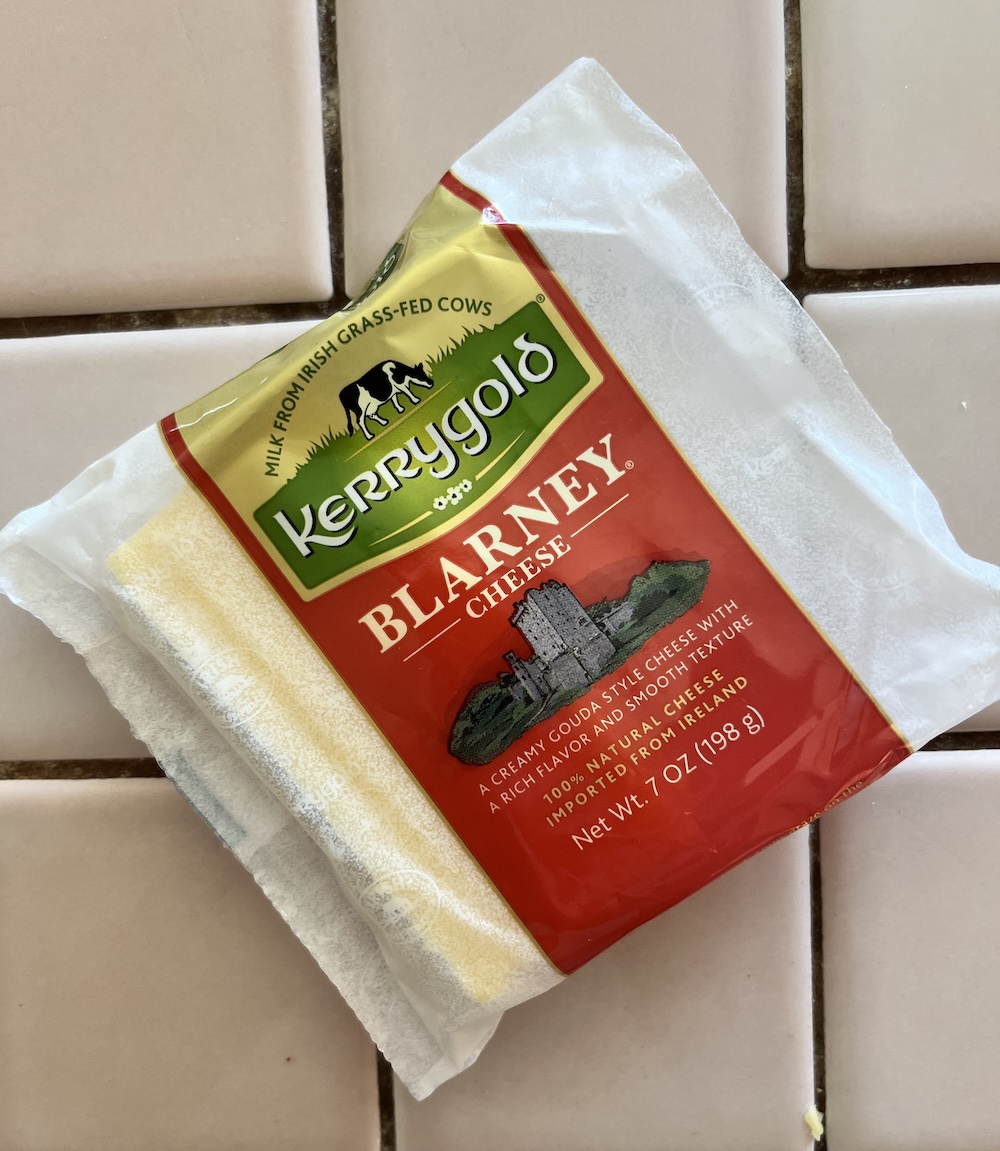 I bought a block of my favorite Kerrygold cheese, their Blarney variety (because Irish, blarney, etc.) and its expiration date was 03/27 — my birthday!