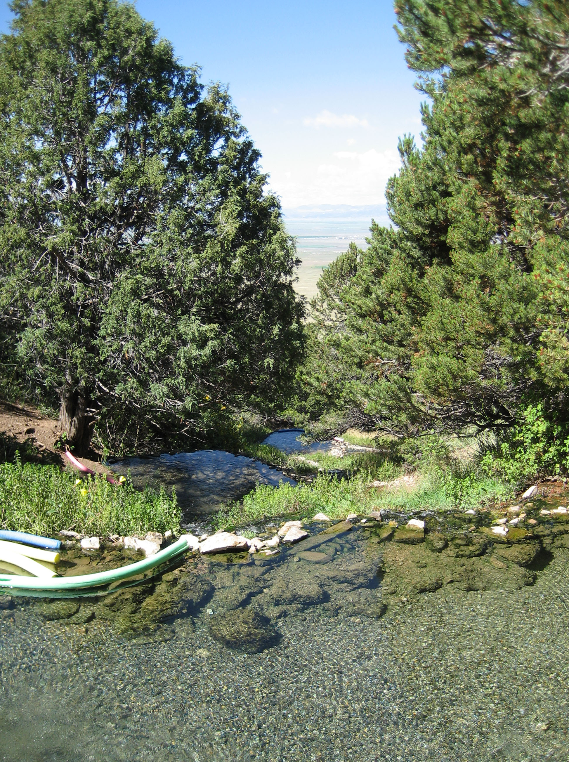 This is where I spent Wednesday night, camping at Valley View and watching the Perseid meteor shower, a light show dampened somewhat by high clouds and a gentle rain. Thirty bucks gets you something like 36 hours of soaking in your choice of eight pools plus a night’s lodging on the ground, in your tent. Pricier options include a bunkhouse, cabins and the Sunset House, a motel-type deal.