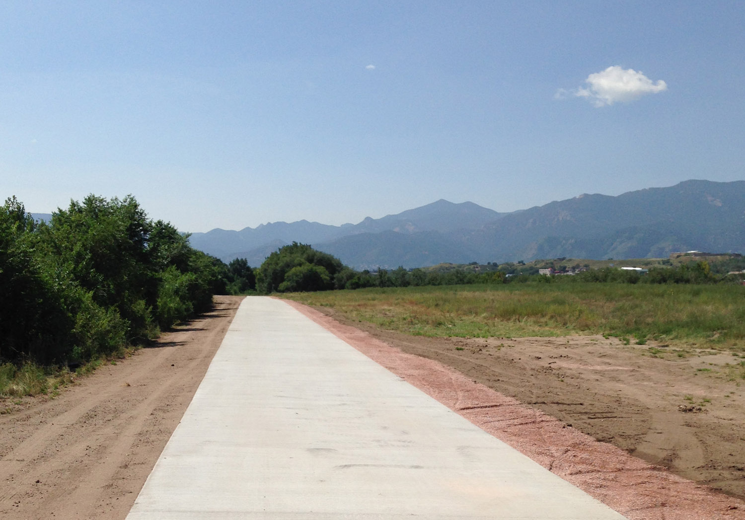 I managed to slip out for a short ride today and found that the stretch of Templeton Gap Trail that takes cyclists from the Pikes Peak Greenway to Palmer Park has a new layer of concrete (it used to be beat-to-shit asphalt and dirt).