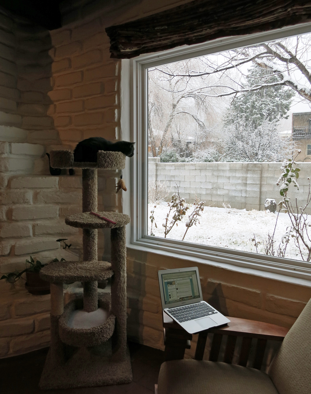 You should have heard the wind that blew this stuff in last night. It sounded like Sarah Palin farting through a bugle in a tin washtub full of nitroglycerin and live ferrets. I had to use some cardboard wedges to stop the bedroom kiva screen from rattling like a GoPro HERO3 Black Edition Velcro’d to a chainstay on a Duke City trail.