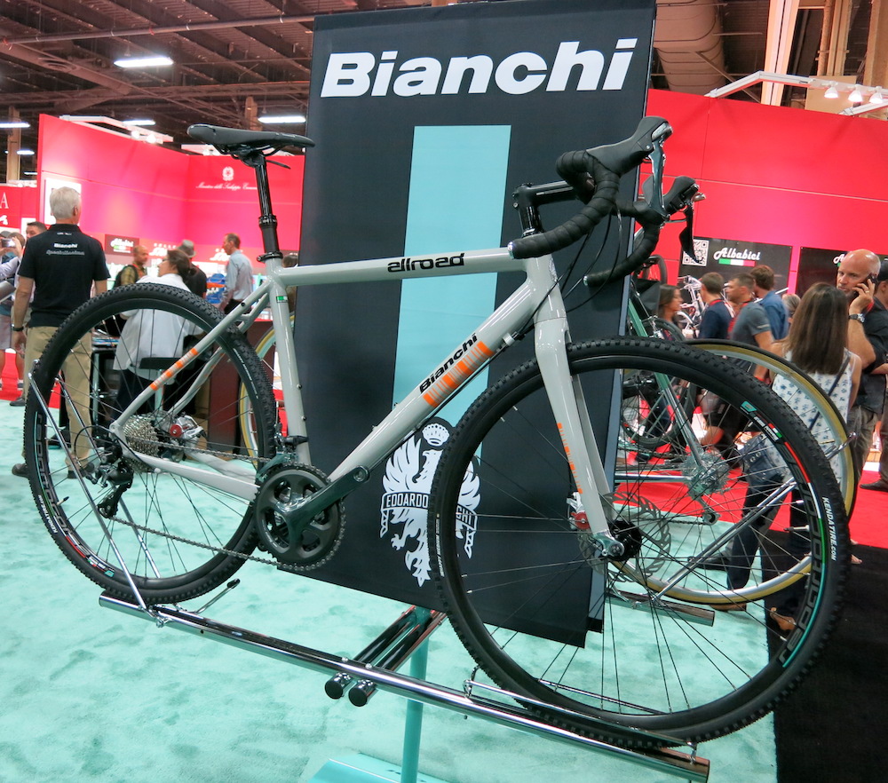 Before dinner, there was more wandering about at the show, during which I got a look at the Marin Four Corners and Gestalt series; the Masi Giramondo; and the Giant Toughroad SLR 1, a rare flat-bar adventure bike.