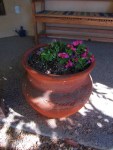 With the Giro finally in the history books, Herself and I decided to spend the morning upgrading a few of the empty pots cluttering up El Rancho Pendejo. We also finally got around to installing our shrine to the Egyptian feline goddess Bastet. Field Marshal Turkish von Turkenstein (commander, 1st Feline Defense Regiment), and his aide-de-camp Miss Mia Sopaipilla had complained that we were hampering their freedom to worship as they choose, and their protests are rough on the carpets.