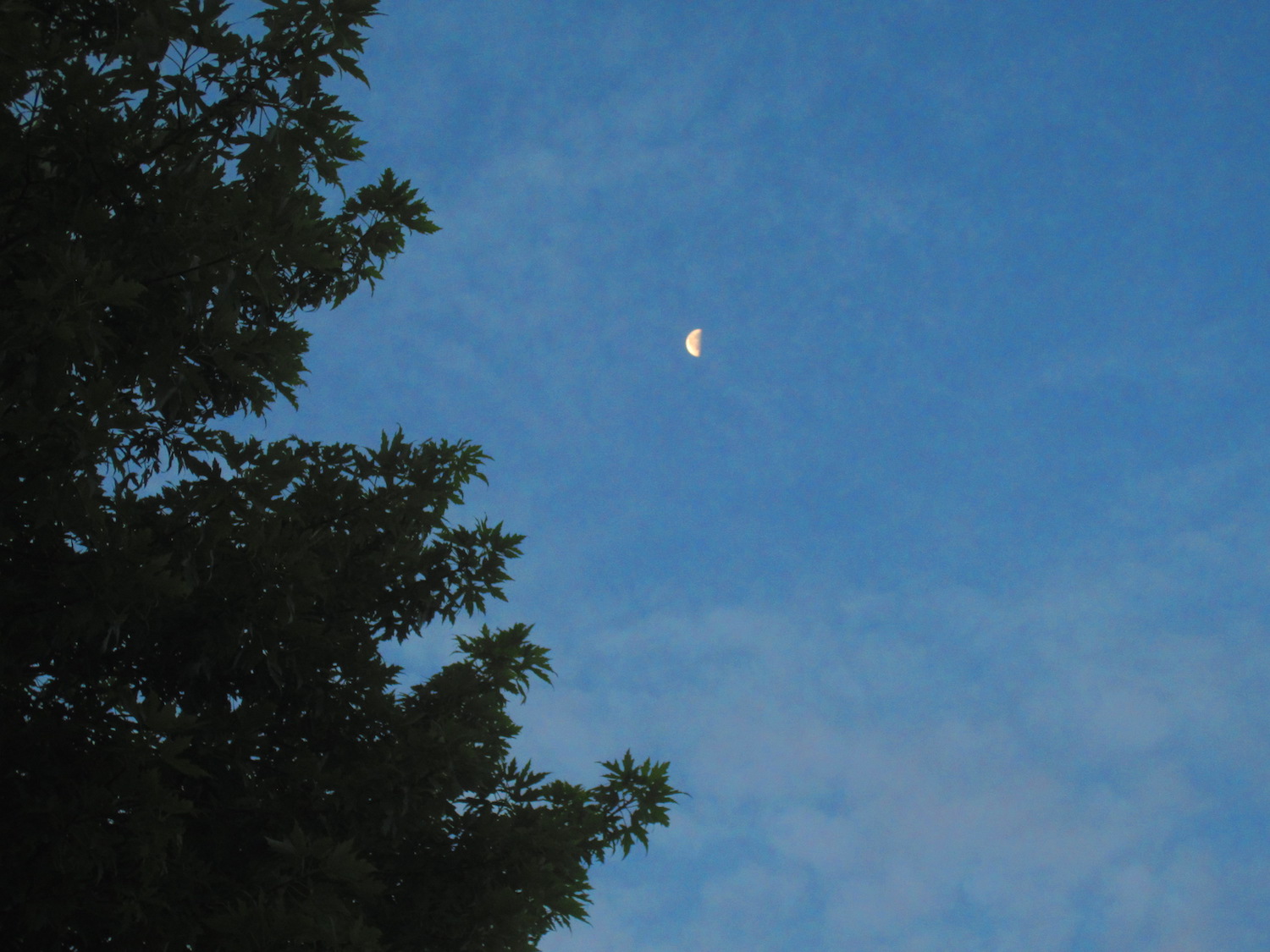 I knew yesterday would be a lovely day when I stepped outside with The Boo and saw the moon fraternizing with the foliage.