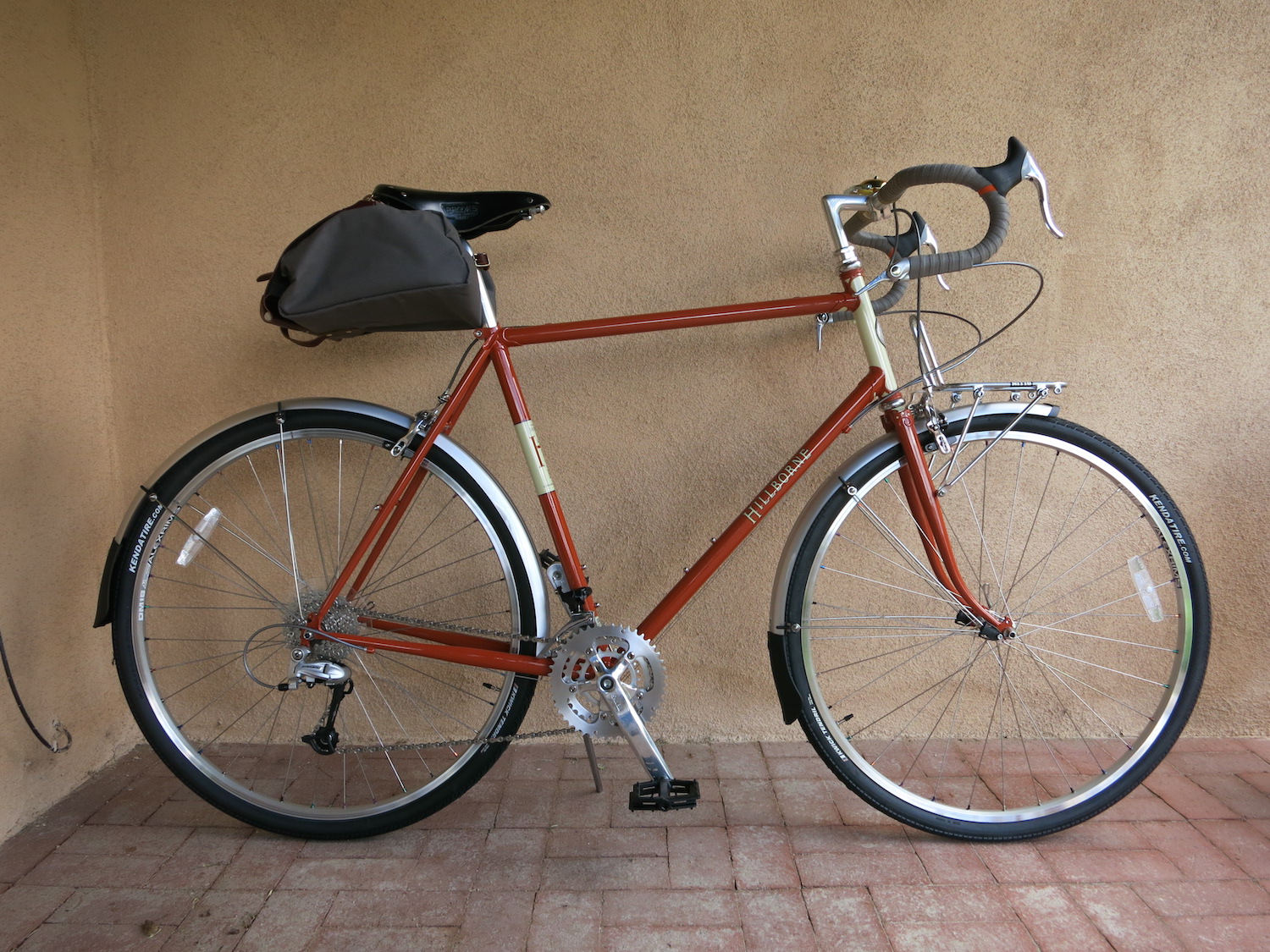 Yesterday I found a slow leak in the rear tire of the Sam Hillborne — it’s always the rear, isn’t it? — and instead of taking the usual half measures I instantly replaced both inner tubes with goopy tubes. Take that, goatheads. Y’pricks.