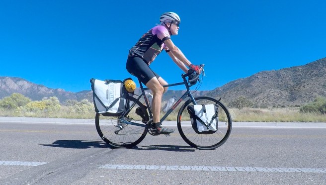 Yes, that is me, riding a Marin Nicasio locked and loaded with racks and sacks. In late October. Wearing shorts, a short-sleeved jersey, and sunscreen. Ice in the water bottles. Blue in the sky.