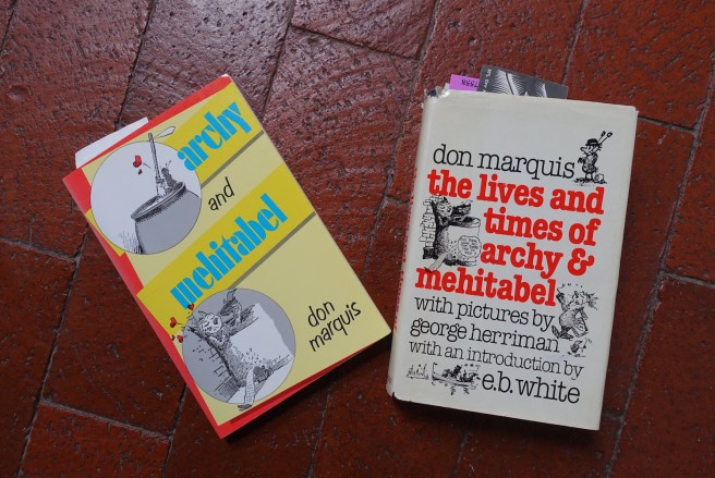 I don’t recall when I first stumbled across Archy and his feline shadow Mehitabel, but I must have been quite young. I was reminded of them many years later when I first read the collection “Essays of E.B. White,” and rushed out to buy me some Marquis.