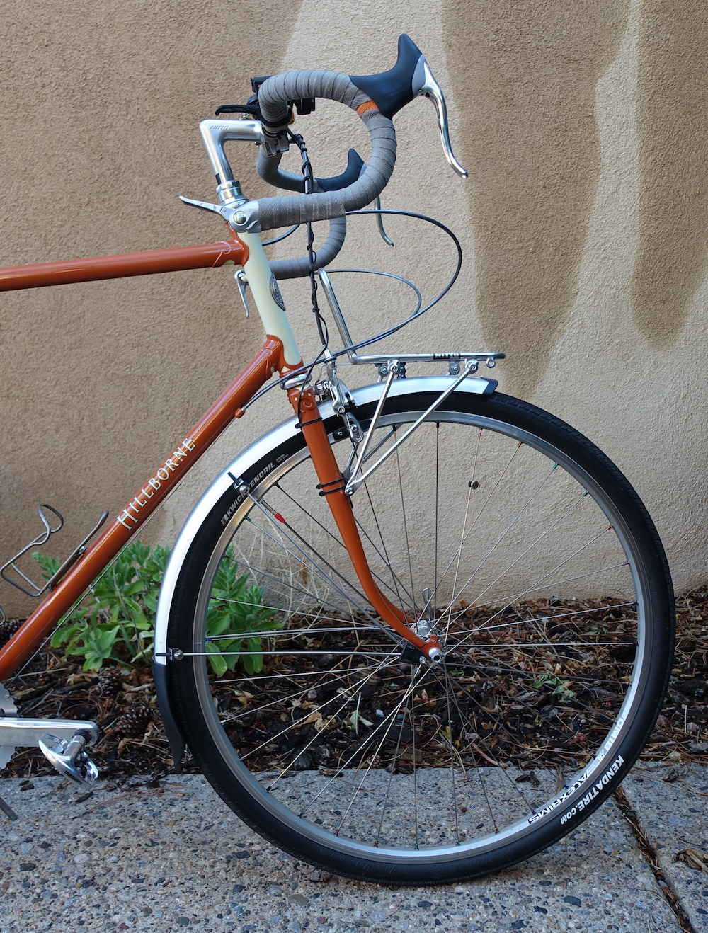 Nevertheless, out of an abundance of caution, because I hate that brown stripe up the keister, on Friday I rode the Sam Hillborne with its silver SKS thermoplastics. And yesterday I hauled out the Soma Saga Disc, which sports a set of black Soma mudguards.