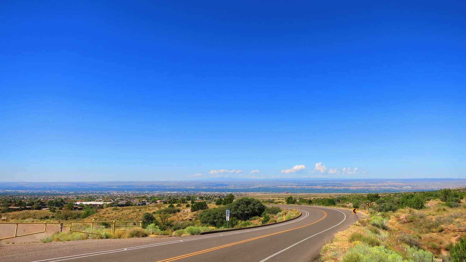 Herself was wheels down at the Sunport around 10 in the peeyem last night, and her luggage took a while to show up, as it will, which meant we were motoring home around the time I usually devote to inspecting the inside of my eyelids while beered-up Burqueños cap each other over right-of-way issues.