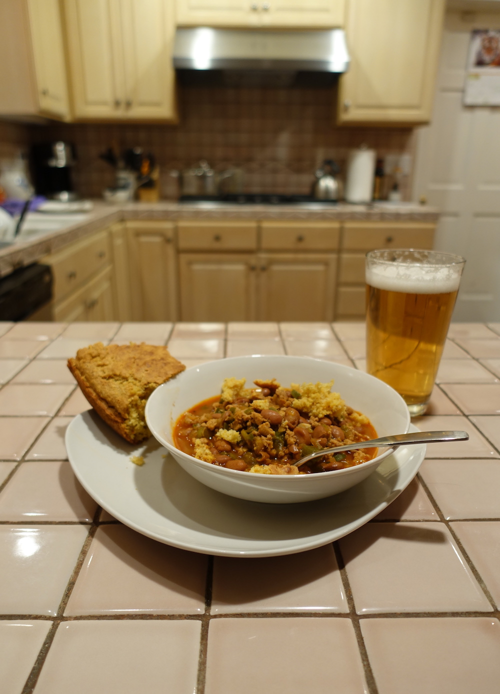 The wind was howling like all the banshees in Ireland and the weather wizards were making snow noises, so last night I cooked a basic chili con carne to stave off pneumonia, chilblains, and the Galloping Never-Get-Overs.