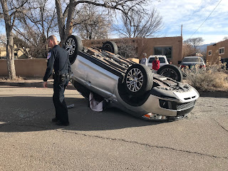 1. I’ll be there unless the local traffic gets me first. This was taken in front of our house in the City Different. Fortunately, the lady driving this car survived. She hit Meena’s Impreza, which did not.