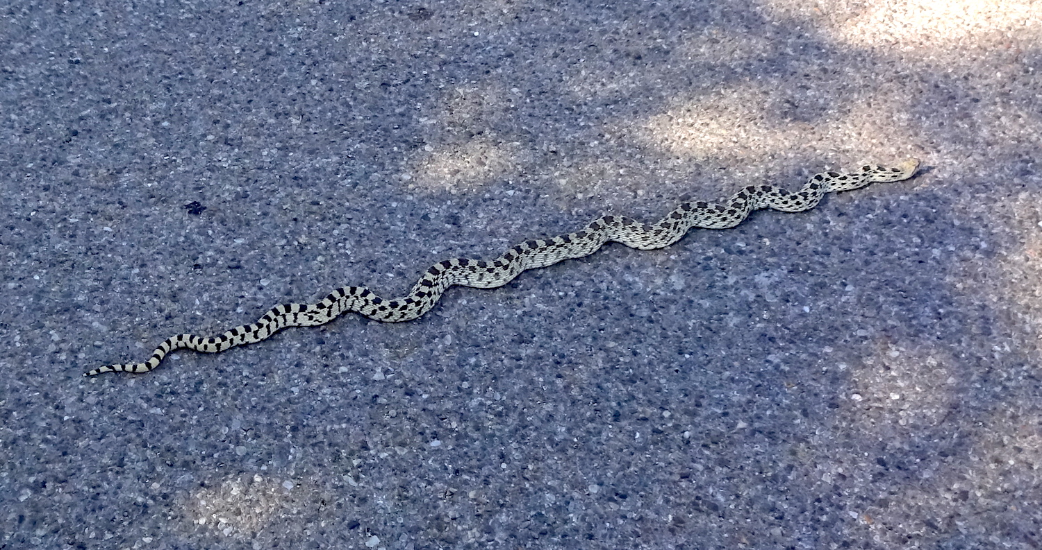 Gopher snake? Bullsnake? Beats me. I check for rattles, and if I don’t see any, I go all like, “Ooo, cool-lookin’ snake.”