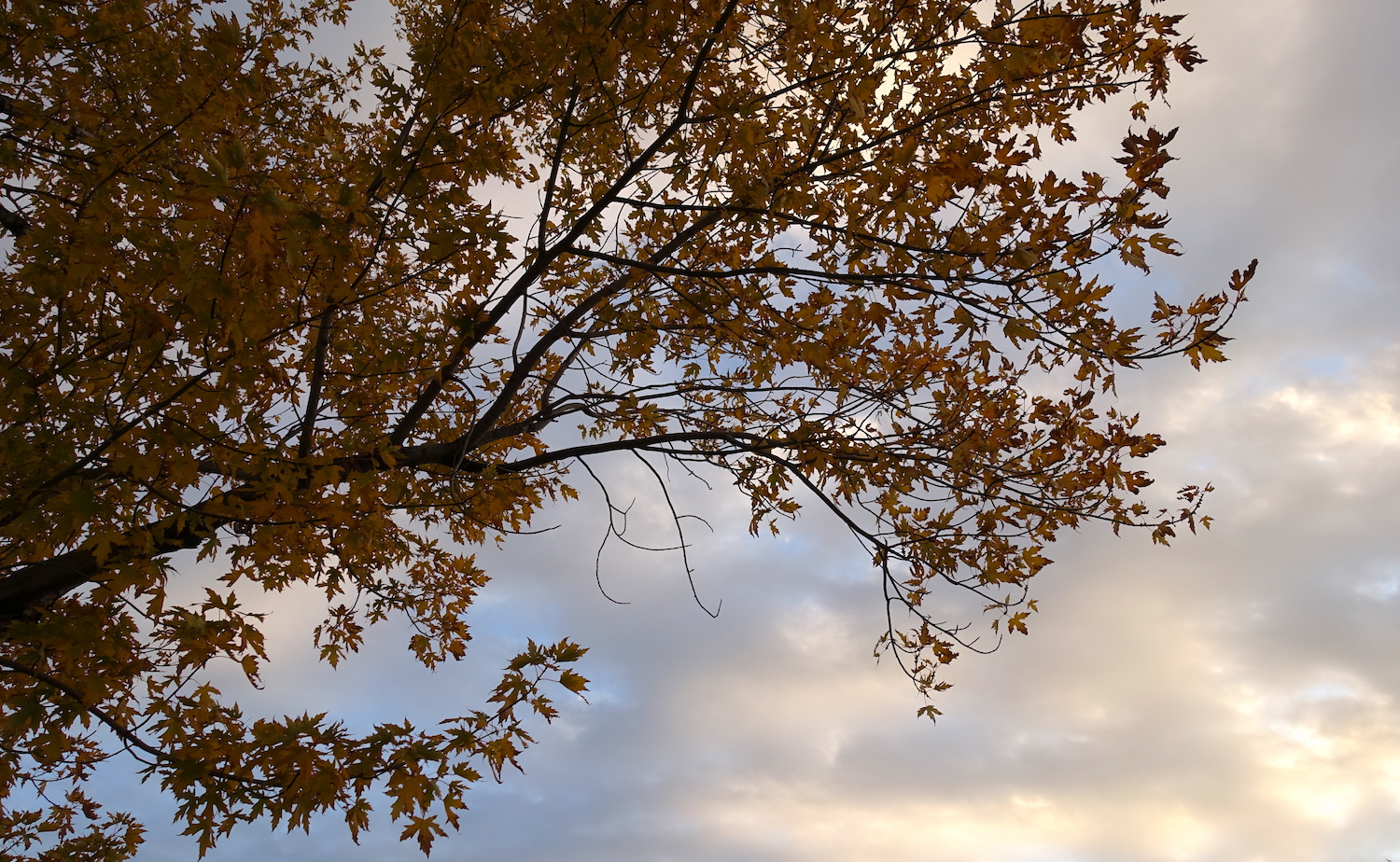 The backyard maple is giving up the ghost, just in time for Halloween.