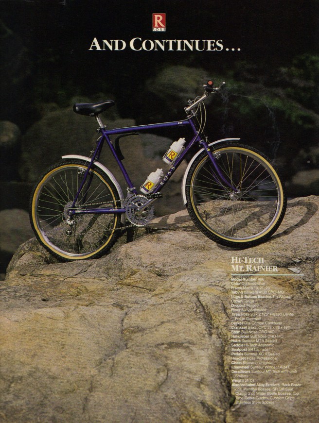 I saw my first Ross mountain bike in the mid-1980s. My man Hal Walter had one, a blue Mt. Rainier acquired from Great Divide in Pueblo, and what a beast it was. A steel burro that never needed hay.