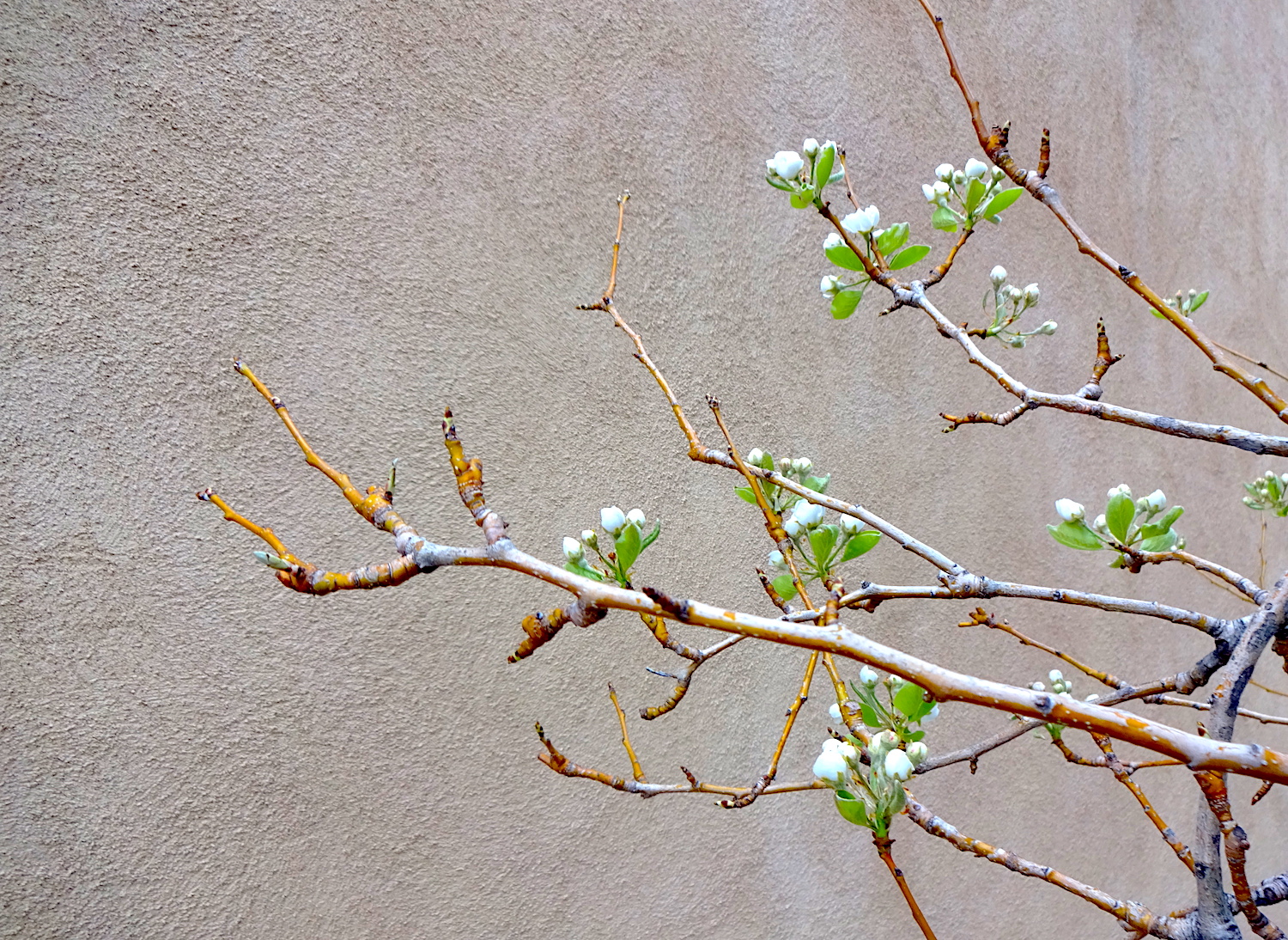 The ornamental pear is blooming … just in time for the morning low to dip below freezing again.