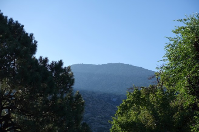Most mornings I get a fine clear look at the Sandias as I shamble around El Rancho Pendejo, opening windows to air out the joint.