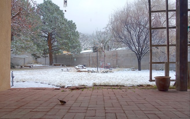 We didn’t get much, Pat. Just enough to broom off the driveway. Under an inch. But at least it got stupid cold. Some evildoer has done made off with my delightful high-desert climate.