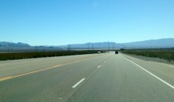 Barring the speed limit (75 mph, except in Searchlight, a notorious speed trap) it seems one of the safest highways you could ride on a bicycle, especially if you had a bunch of colorfully clad companions and a support vehicle. Smooth pavement, wide shoulders, and incredible visibility. A long sightline. You can see company coming a long way off.