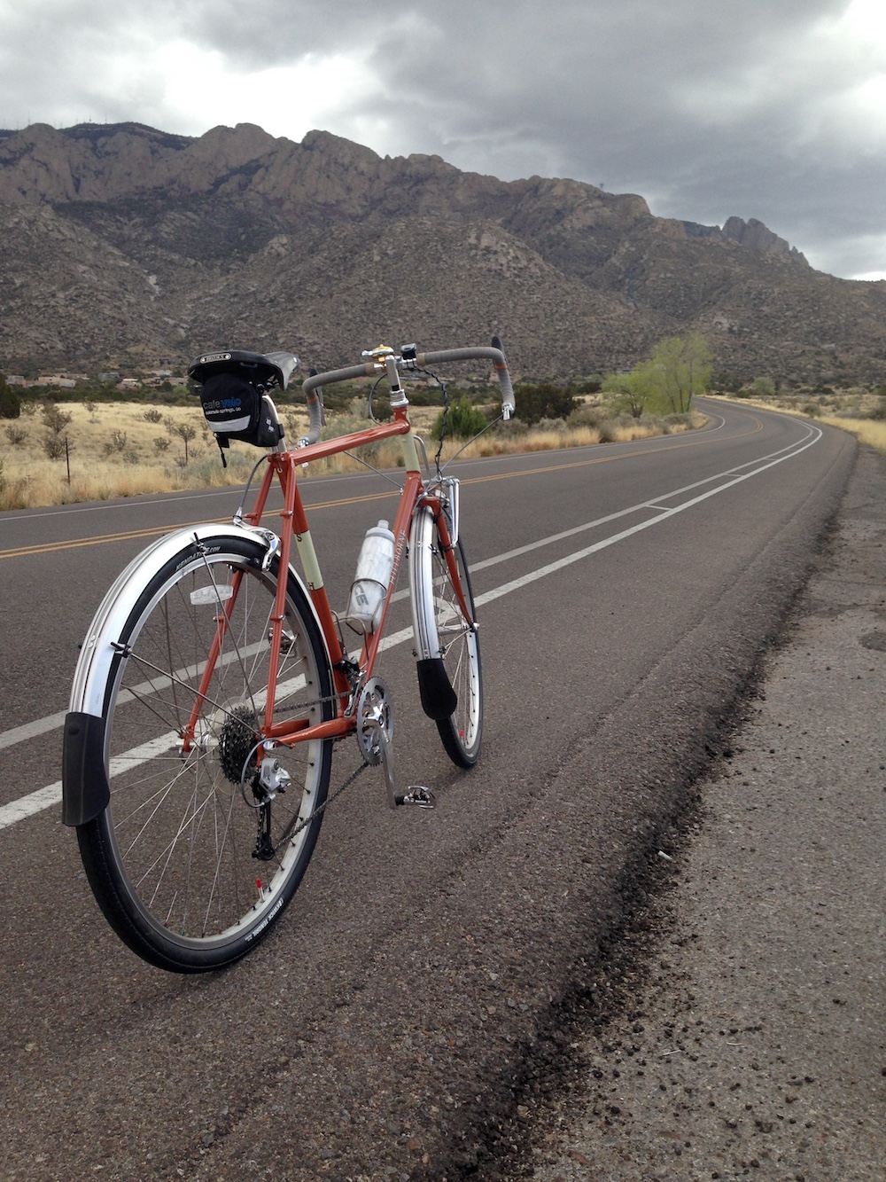 I’ve seen two fine auto crashes in the past two days. The first was on Tramway near Comanche; a Honda Element and some other vehicle came to grief in the southbound lanes as I was cycling northward on Sunday. The second ate up two northbound lanes on Juan Tabo near Lomas on Monday, as I was taking the Fearsome Furster in for an emissions check and re-registration.