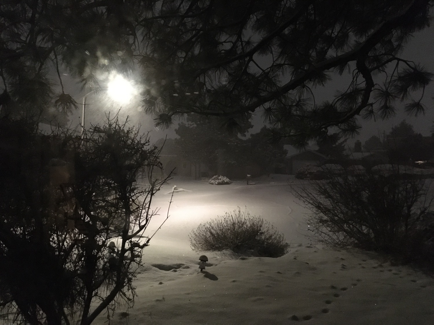 “It’s a winter wonderland!” Herself sang as I flung open the bedroom door, growling like an elderly bear, a hitch in my gitalong after a night of imperfect sleep.