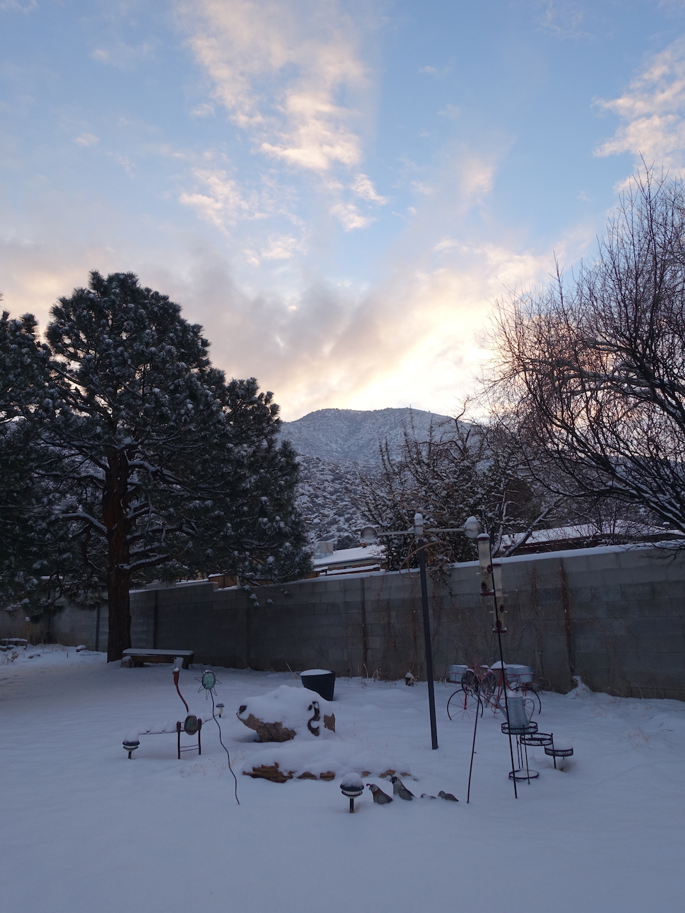 The weather wizards are proclaiming a blizzard warning for the Duke City and its environs, but Boreas seems to have pissed off somewhere. Maybe he’s stalking Cupid.