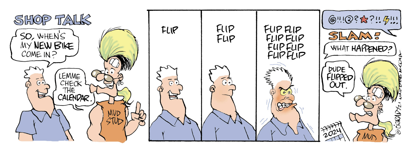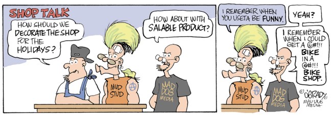 • Editor’s note: Here’s the last of my selected “Shop Talk” strips from this year’s run of Bicycle Retailer and Industry News. And yes, as of 2022 it will have been 30 years since the first one appeared..