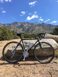 The DC in its present incarnation — cantilever brakes, eight-speed drivetrain with bar-cons, etc. — is kind of an old-school cyclocross bike, if you overlook its triple crankset, long-cage XT rear derailleur, and 43mm Soma Cazadero tires. Plus its stem is too long and too low. And I wouldn’t use a wide-profile brake like the IRD Cafam II on the rear end if I were jumping on and off the bike the way I did when I was a sprightly young fellow. I carved my right leg like a Christmas turkey once and further instruction was not required.