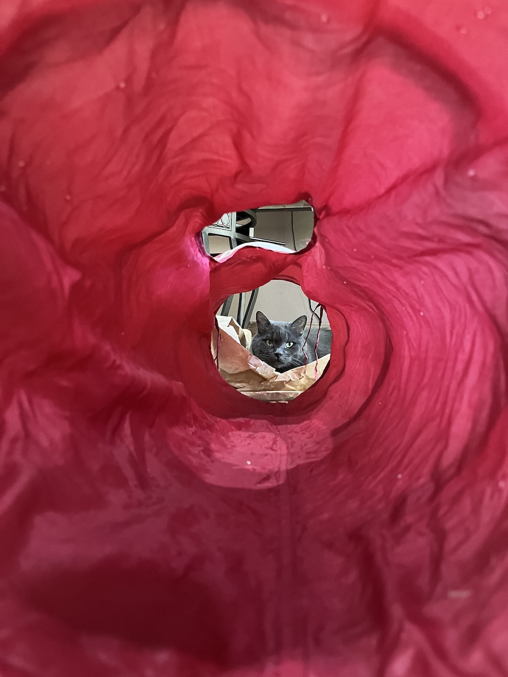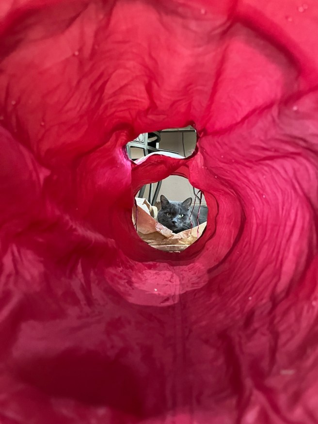Miss Mia Sopaipilla has rediscovered the joys of an old crinkle tube, some coarse wrapping paper, and a Wholeazon Amafoods shopping bag, all of which make fine sounds when run through, sprawled upon, or snuggled into.