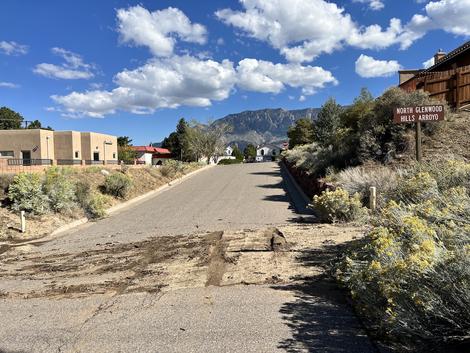 The sand and gravel from the neighborhood arroyos tend to go walkabout under such conditions and thus I rode a touring bike today, with fat tires and fenders.