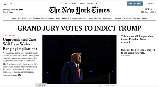 By jawing frantically with “people familiar with the matter who, like many in Trump’s orbit, spoke on the condition of anonymity to candidly share details of private discussions,” as The Washington Post puts it in a piece about how various minions, knaves, and varlets got caught with their pantaloons around their cankles when the indictment was announced.