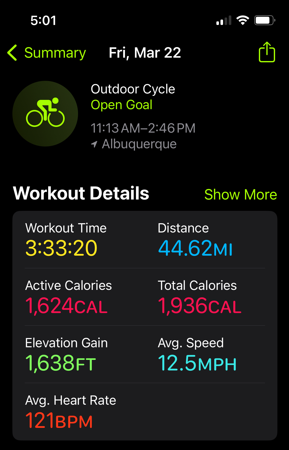 I thought I’d get more vertical than this, but that bosque trail is flatter than a Republican’s head.