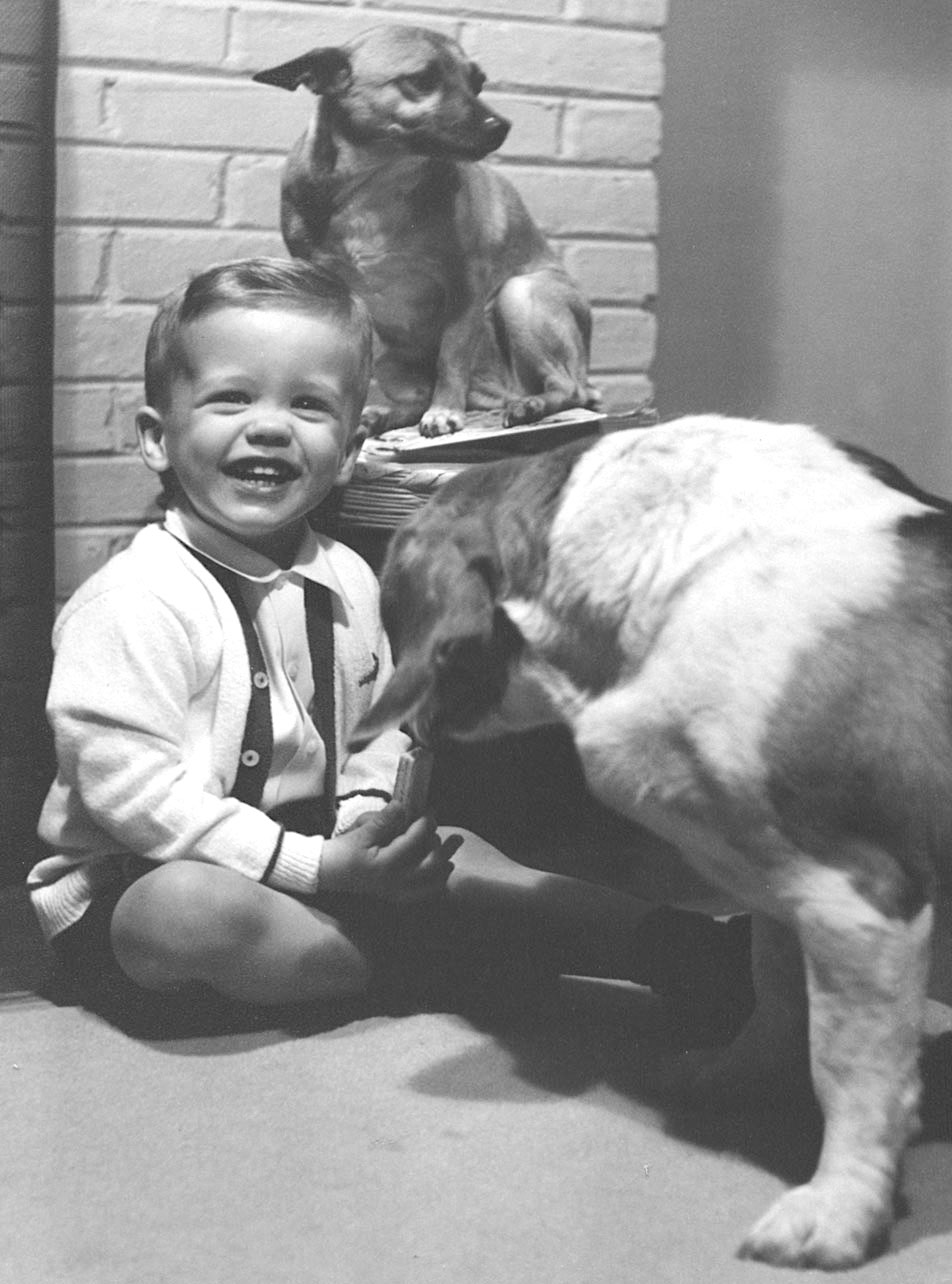 A much younger Dog with his dogs, Sandy (top) and Clancy (bottom), rockin’ around the clock in those Fabulous Fifties. No date or location on the image, but it has to be 1956 or thereabouts and probably Falls Church, Va.