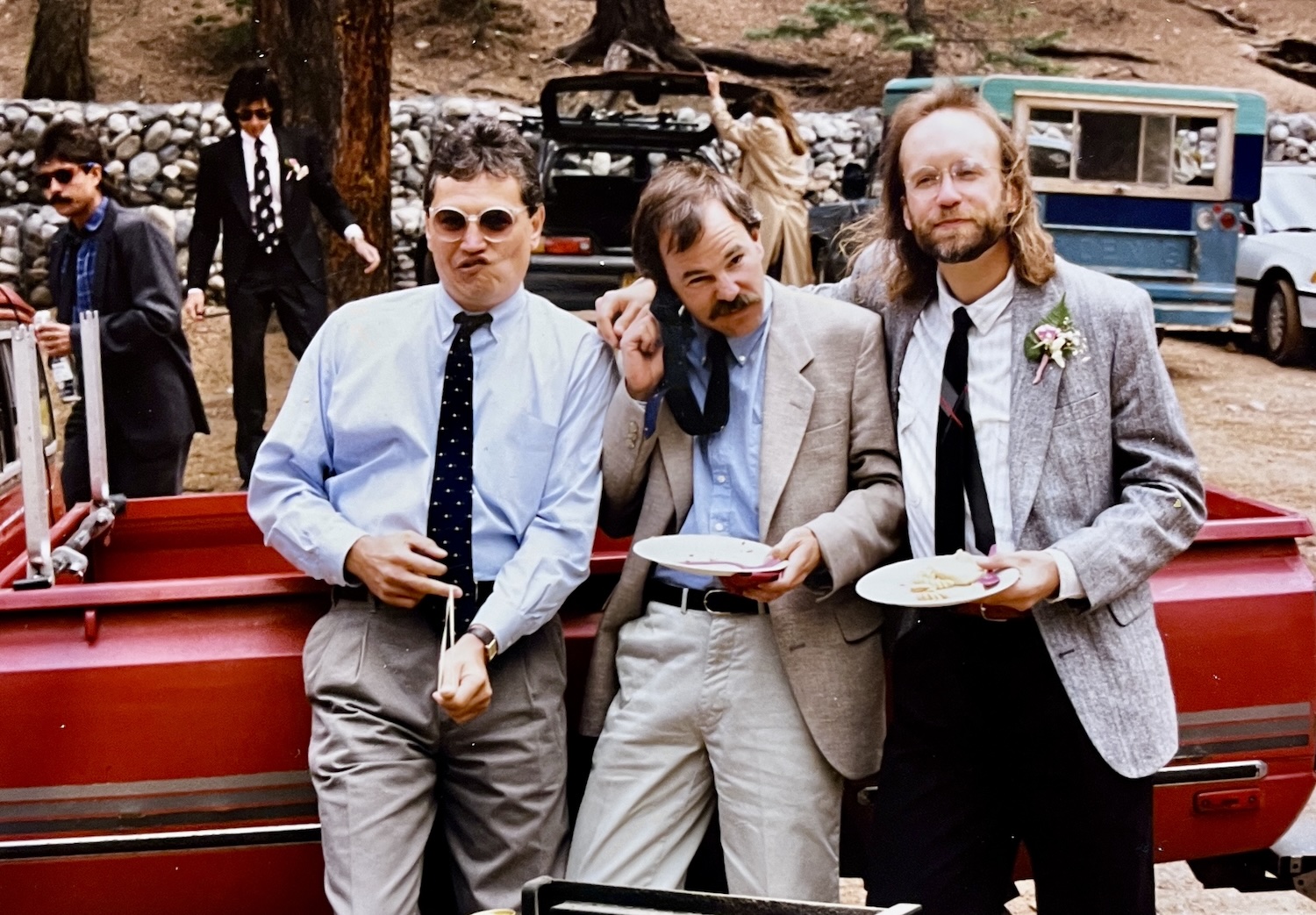 My wedding, circa 1990, Santa Fe: In the foreground, (L-R): Jethro, Intercoursey, Shady (yes, that would be me); background, Rudi Boogs, Mombo.