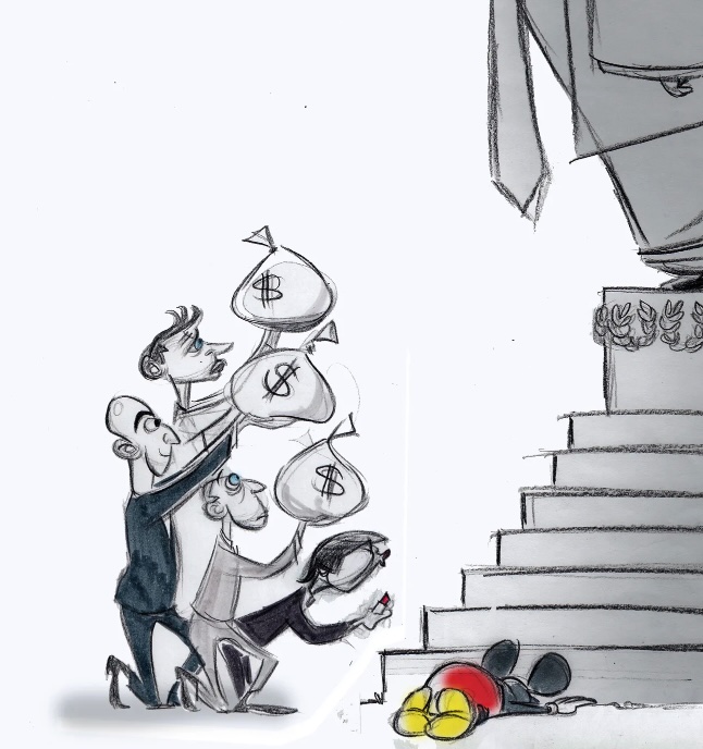 I thought this country left royalty behind when it departed the old continent? Why is it though that we feel that we must bow down to an individual we elect to lead us? Isn’t that individual simply a figurehead? One who can easily be replaced with the next in line? Oh! That’s right! We are controlled by our value. As defined to us by how much we have. And that which we have is that which we work, steal, connive, backstab, kill, and pleasure for. We are a well-marketed species. We do what we are told so that we are accepted. Because that is what we are told. Those like Ann Telnaes simply remind us of how it actually is, and of course, those that lead us can’t have too much of that. We might get it in our minds that we don’t need it anymore.
