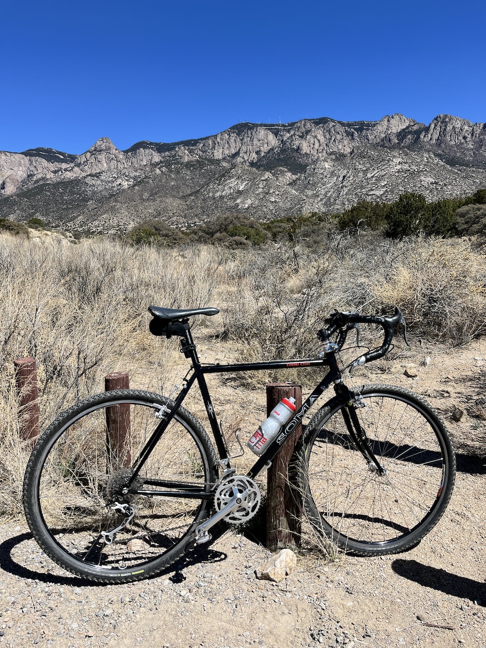 Pic in hand, I pulled a U and enjoyed a tailwind to the Paseo del Norte trail, then took the usual route back to the rancho, along Bear Canyon-Osuna, up and over I-25, past the golf course and thence to Tramway via Manitoba, and home again home again, jiggity-jig.