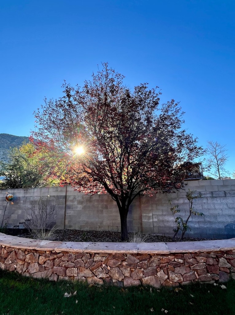 Well … truth be told, as feasts go it was fairly light dining. Green chile stew, salad, freshly baked cornbread, and raspberry cobbler with whipped cream. Fake beer for me, real beer for Herself.