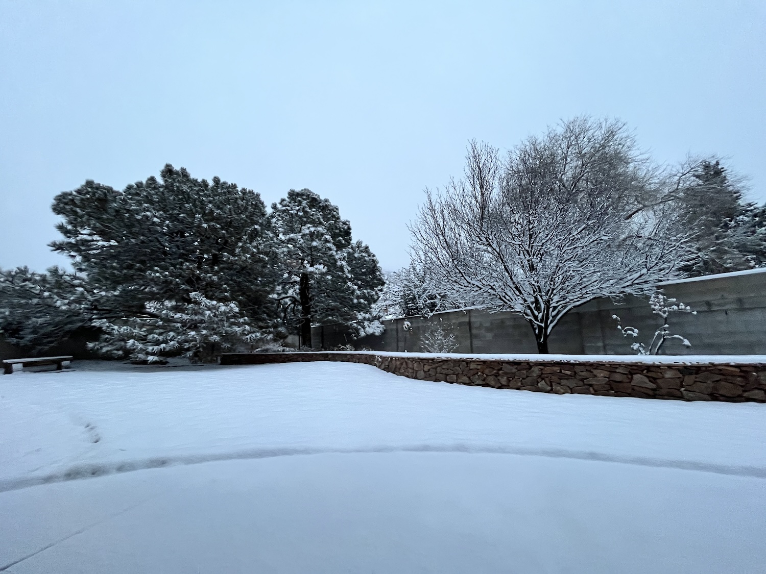 I make it maybe two, three inches, tops. Didn’t have to drive in it, so, winning. Did have to shovel it, so Herself could drive in it.