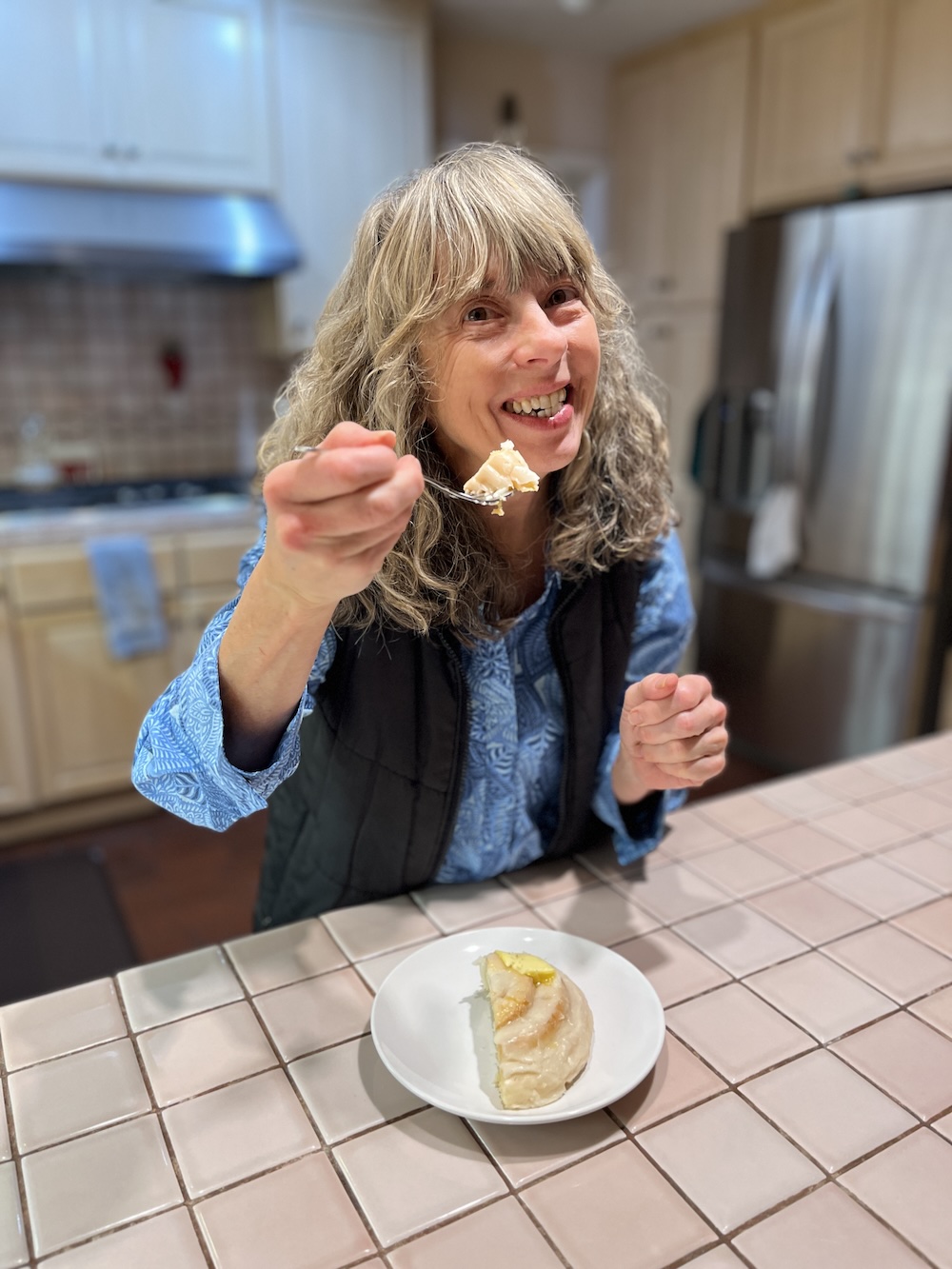 By “them” I mean Herself, and by “cake” I mean “half a cinnamon roll,” and why on earth should Herself be eating cake for breakfast?