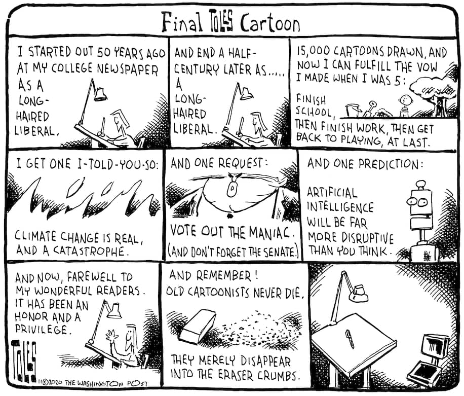 Back in 1974 the newsroom was stiff with talent, the best possible haven for a wannabe cartoonist shambling out of his teens into nowhere special if he didn’t pull his hairy head out of his hippie arse.