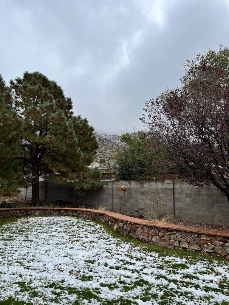 We were a little worried about losing it again — the forecast called for 5-12 inches of snow in the foothills — but at a glance I’d say the weatherpeople missed their guess by, oh, let’s see here, about 5-12 inches.