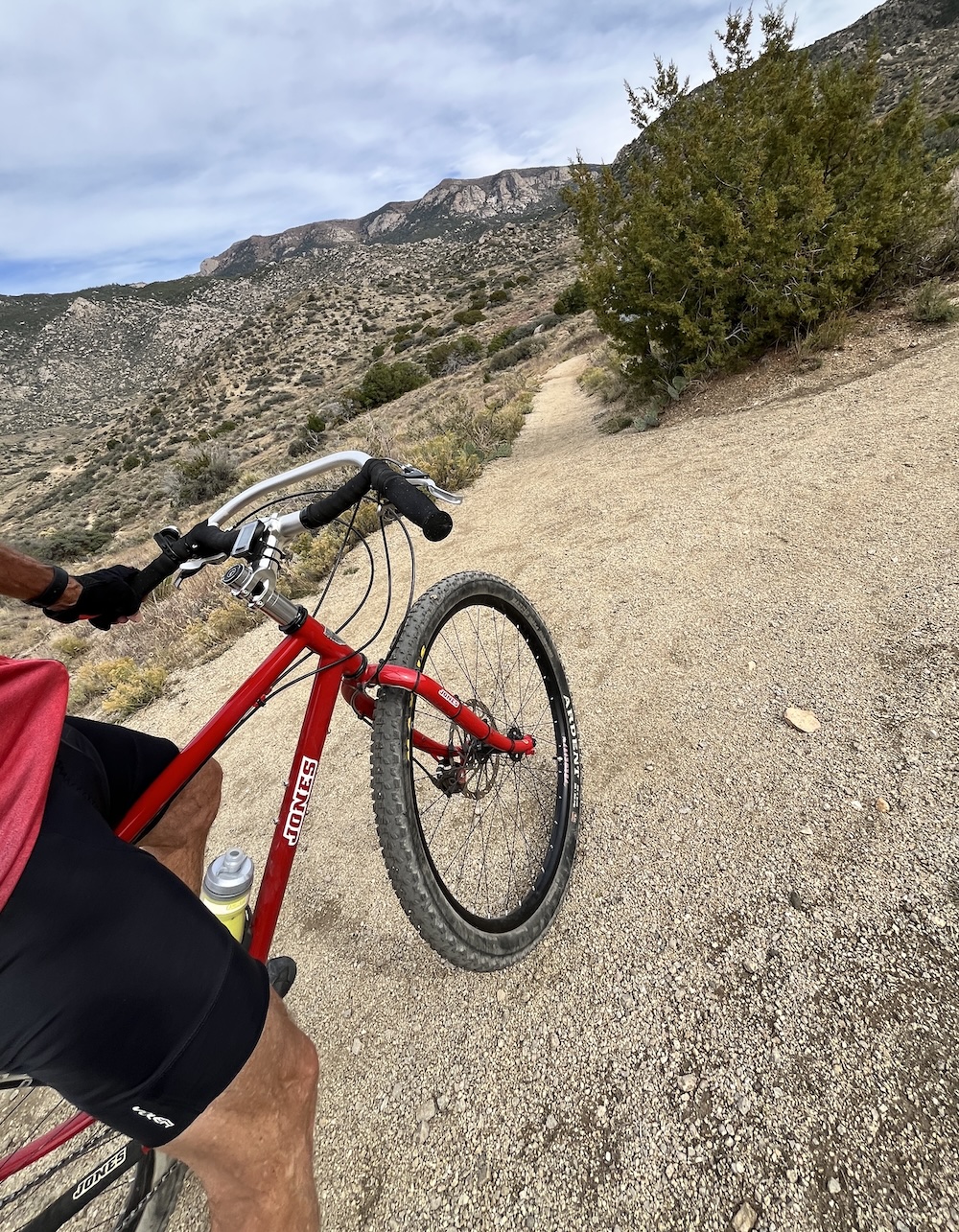 Or perhaps it’s that I’m rocking a streak of vivid dreams about bicycling in outlandish circumstances, perhaps as a reaction to getting myself locked into a small selection of predictable 20-milers, your basic hamster-wheel loops, for no good reason that I can think of beyond sloth and convenience. An assist from Rand McNally is not required for this sort of tour de meh. Trying to break the chain I recently took two rarely ridden bikes on short outings, one of them involving a few miles of singletrack I hadn’t ridden since January. I dabbed frequently and shamelessly.
