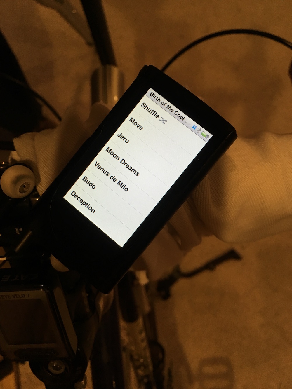 It wasn’t as stupid as it sounds, probably. I did a half hour in low gears. Three-point-five miles with Miles, for an average speed of 7 big big mph. I was wearing my Darth Gimp boot on the starboard side and a Vasque Clarion hiking boot on the port, which kept me more or less symmetrical. Also, I dropped the saddle a couple cm to allow for a certain lack of flexibility in the wonky bits.
