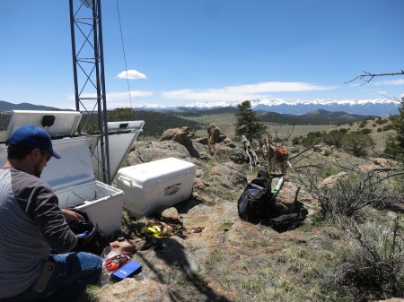 Thus, instead of unplugging bits of this and that in the comfort of his own home, Hal found himself hauling 100 pounds of new batteries up to the tower via pack burro while a tech-support dude who was decidedly not from Delhi refreshed the coolers’ innards.