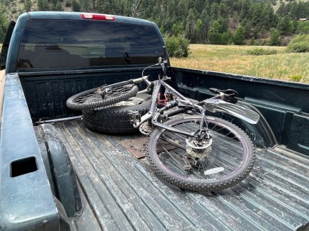I also use them as transportation in my side hobby of training wild burros for pack-burro racing. I can trailer a burro away from the ranch, run it home. Then I hop on the bike, ride back to my rig, throw it in the bed and drive home. I don’t care how this looks and I often don’t wear a helmet.
