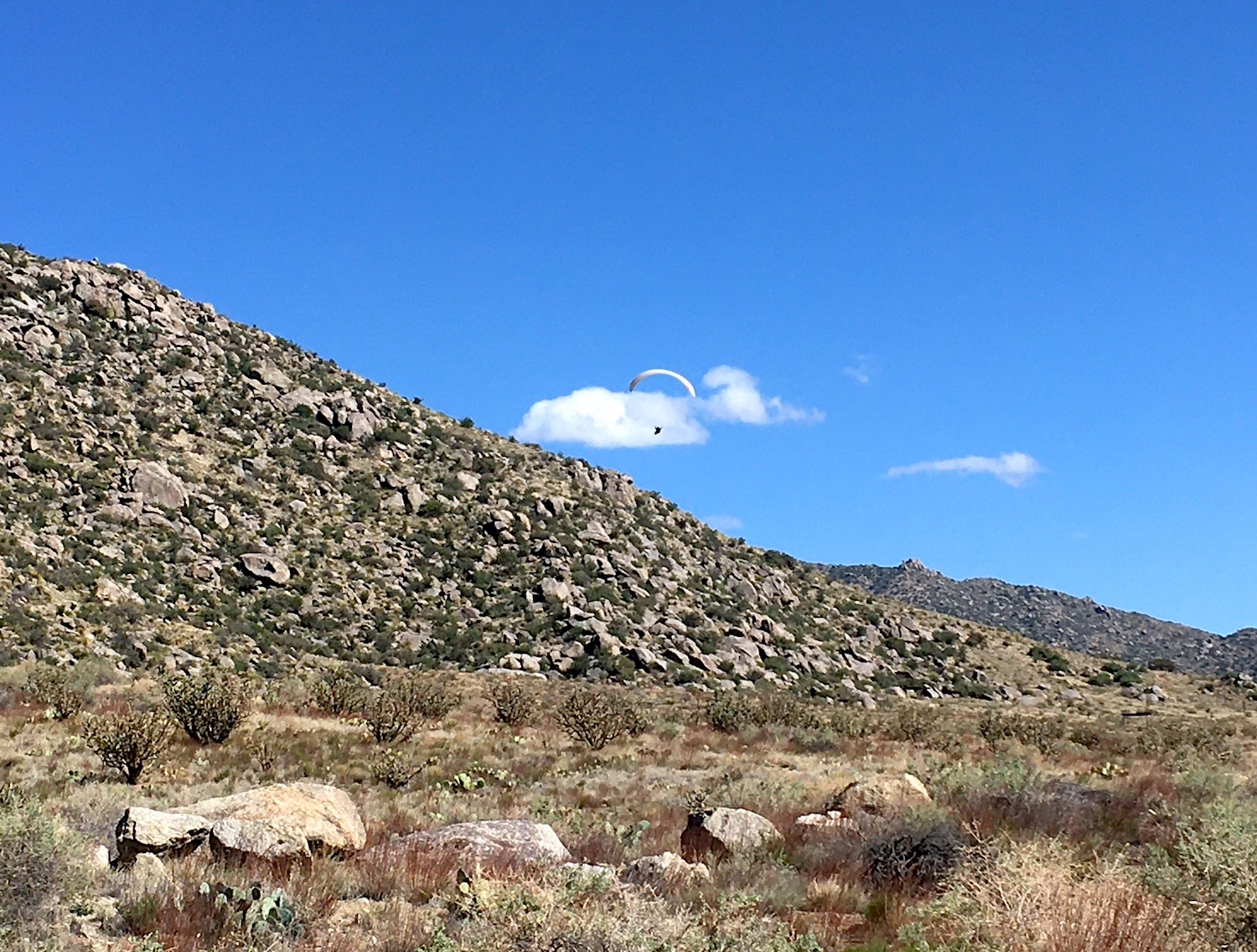 On Sunday I nearly stepped on my first snake of the new year as I legged it up a sandy arroyo not far from where the glider pilot touched down. He was a little fella and disappeared into the underbrush. The snake, not the glider pilot.