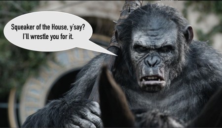 Speaking of talking shit, slaps, and mics, the House of Reprehensibles gave the back of the hand it wasn’t using to write the Liberty in Laundry Act, the Refrigerator Freedom Act, and the Hands Off Our Home Appliances Act (HOOHAA) to the Creature from the White Lagoon for trying to topple Squeaker Mikey Mouse (hey, if you can’t legislate, defenestrate). MTG couldn’t even get the window cracked, much less toss Mikey out of it. Nevertheless she drew reporters like a dead dog draws … well, reporters. (Hi, Kristi Noem!)