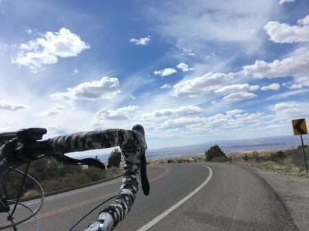 Our peloton included three octogenarians and a couple gents sporting aftermarket parts installed after unscheduled getoffs. One of the 80-somethings may have been jealous of the cyborgs and hunting a retrofit of his own, because he crashed coming into Tijeras; alas, not hard enough to require the full Steve Austin makeover.