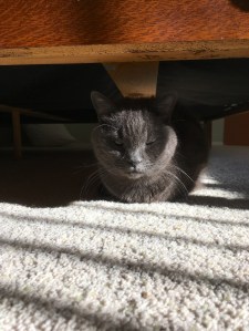This is one of the few downsides of living snuggled up to the Sandias. Come fall the sun doesn’t peek over the mountains and through the trees until 9:30 or later, which causes Miss Mia Sopaipilla to burn the early morning hours hunting a toasty napping place that does not yet exist as such.