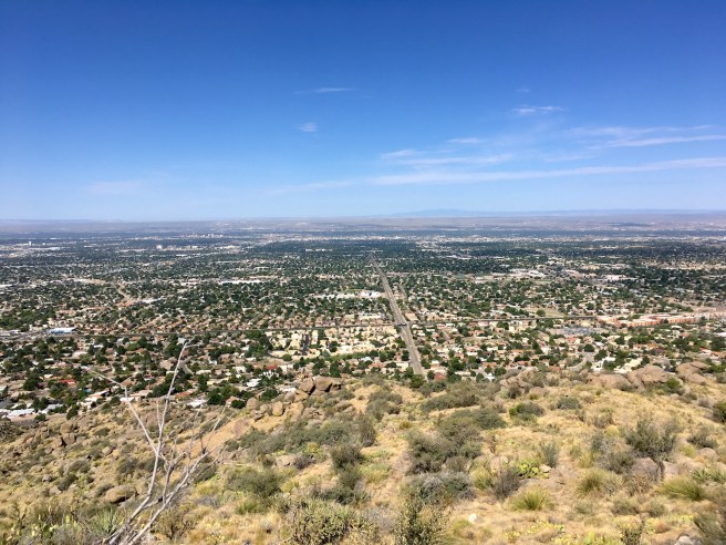 But if I am afoot, 365 gives more bang for the buck. All manner of unmarked trails snake upward into the Sandias, where I can get a good long look at what a mess we’ve made of the Albuquerque Basin.