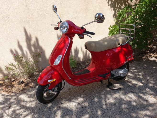 But I took the easy way out. Pulled the Wald basket off the Soma Double Cross, strapped it to the rear rack on the Vespa, and putt-putted over to the Sprouts with a messenger bag slung over one shoulder.